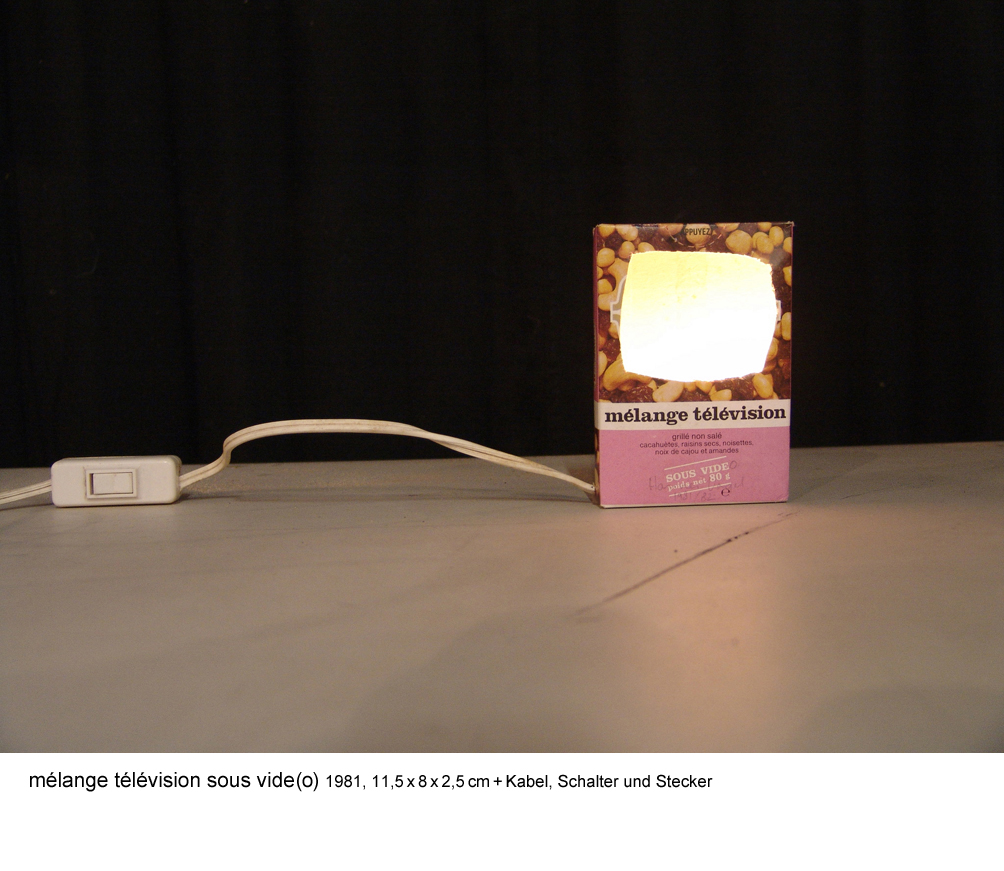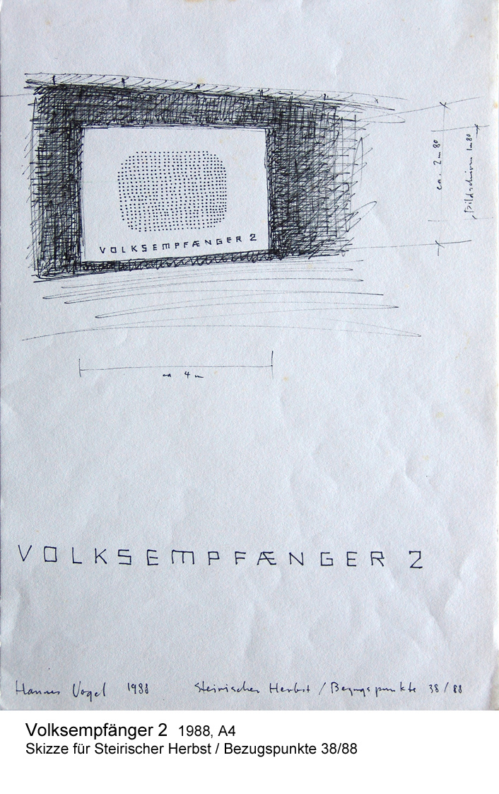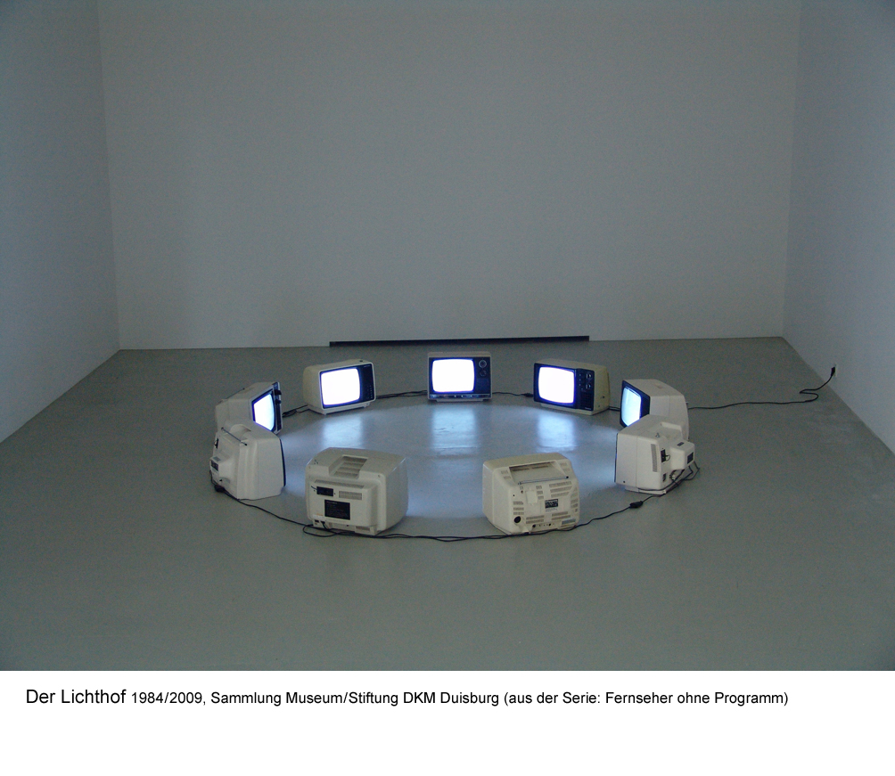 Vom Fernsehen und der Illusion dabei zu sein 1979, Videoistallation. Fernseh-Fallen 1980, Videoinstallation. Der Lichthof 1984, Fernseherinstallation.
