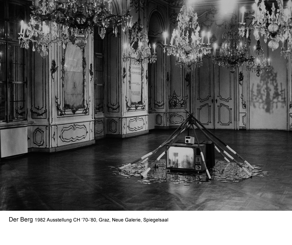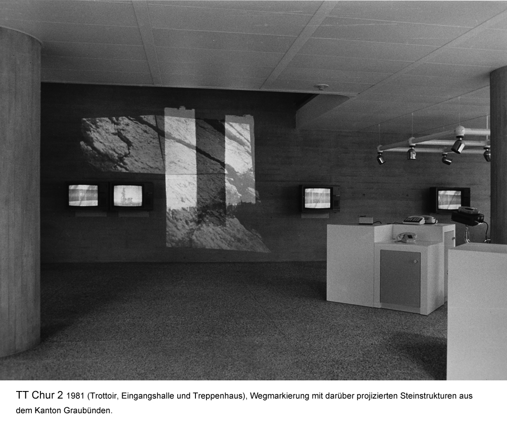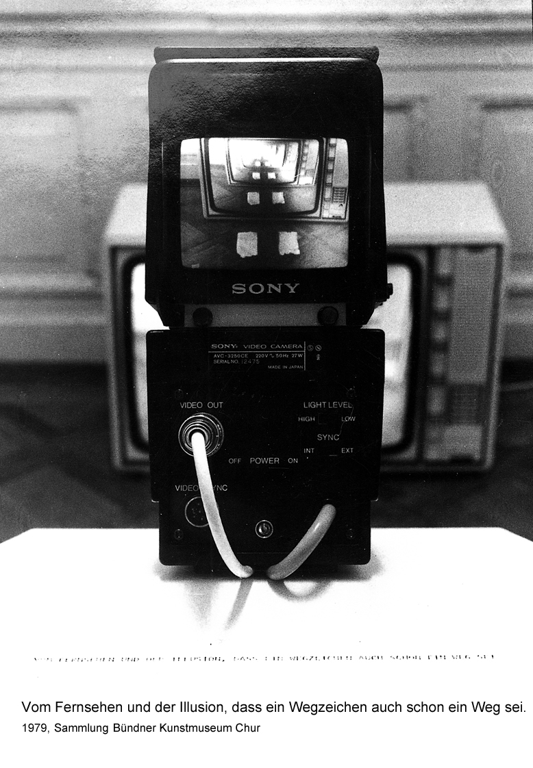 ''Vom Fernsehen und der Illusion, dass ein Wegzeichen auch schon ein Weg sei'' 1979, Videoinstallation Kunstmuseum Chur